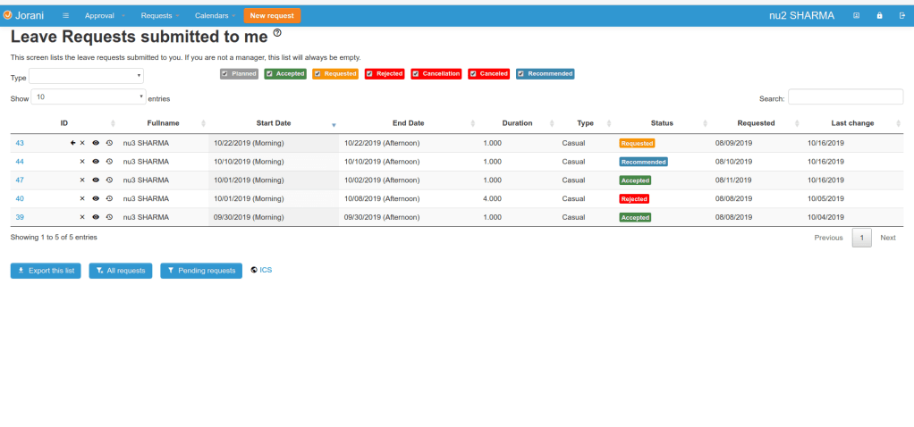 Today I have Recommend leave status. perform following tasks.