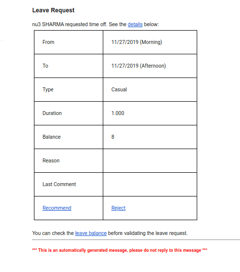 Also if a manager click on recommend button then a mail will be sent to next level of manager.