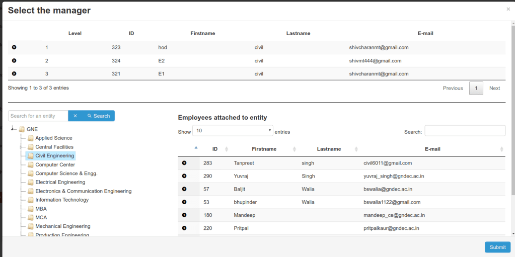 Today I have Added chechid() function it prevent duplicate entry in manager level by using their user id and removed some unnessary code.